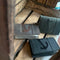 Das Dach dieser Tasche besteht aus einem gebrauchtem, wasserfestem Zeltstoff.
